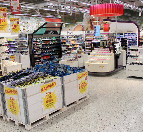 Butikens skönhetsavdelning är en fantastisk start på shoppingturen precis i början av kundvarvet där det är lätt att stanna till och inspireras.